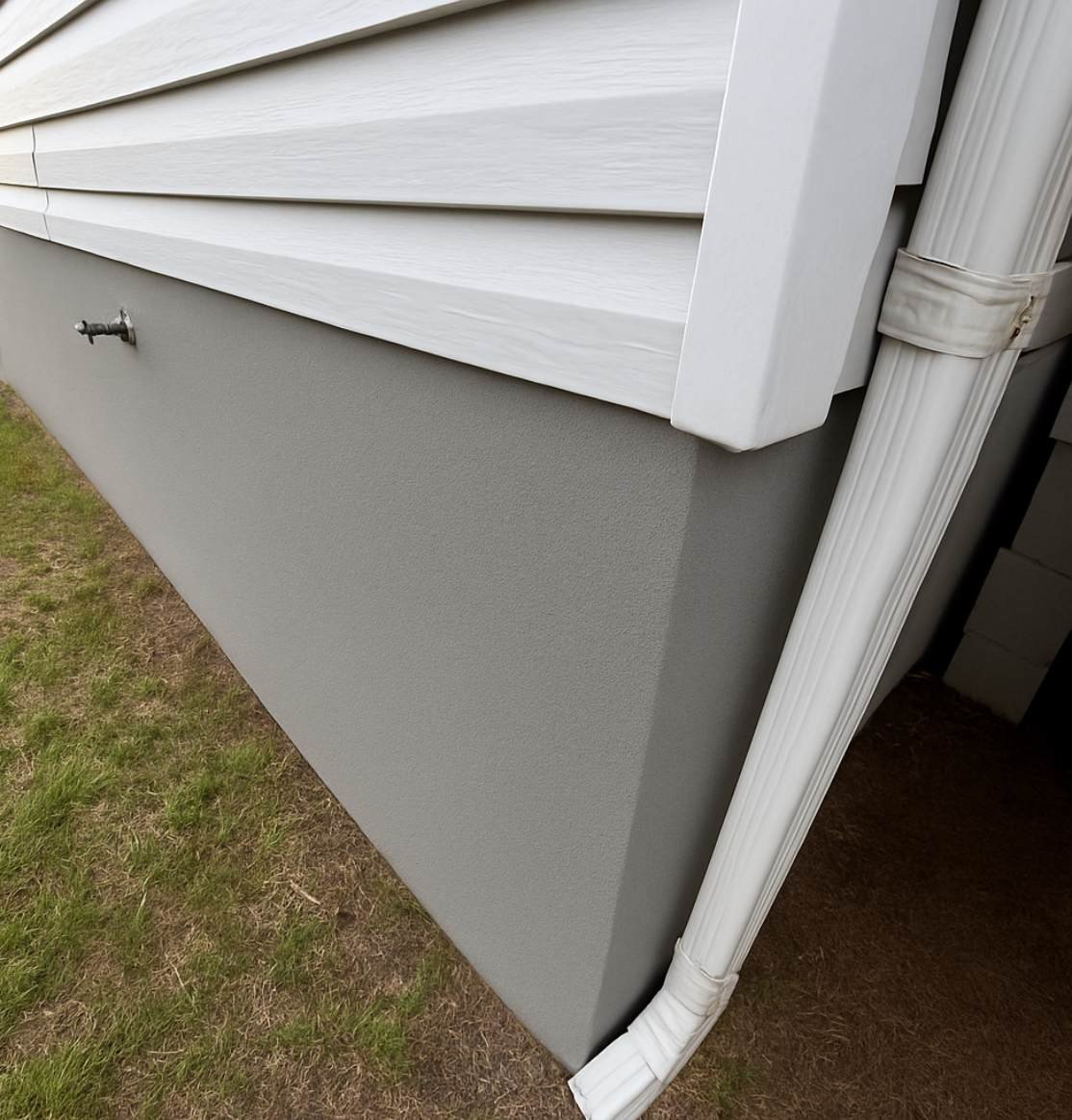 Le crépi cimentaire, aussi appelé enduit ciment, est reconnu pour sa durabilité exceptionnelle et sa résistance aux chocs, aux UV et aux conditions extrêmes. Il forme une couche épaisse et solide qui protège le solage contre l’humidité, les infiltrations, le gel et la pollution. Parfait pour les murs neufs en béton, parpaings ou briques, il s’applique directement sans sous-couche. Il propose différentes finitions (gratté, taloché, lissé) et peut être peint selon vos goûts. Ce type de crépi est une solution économique et robuste pour les fondations apparentes.
