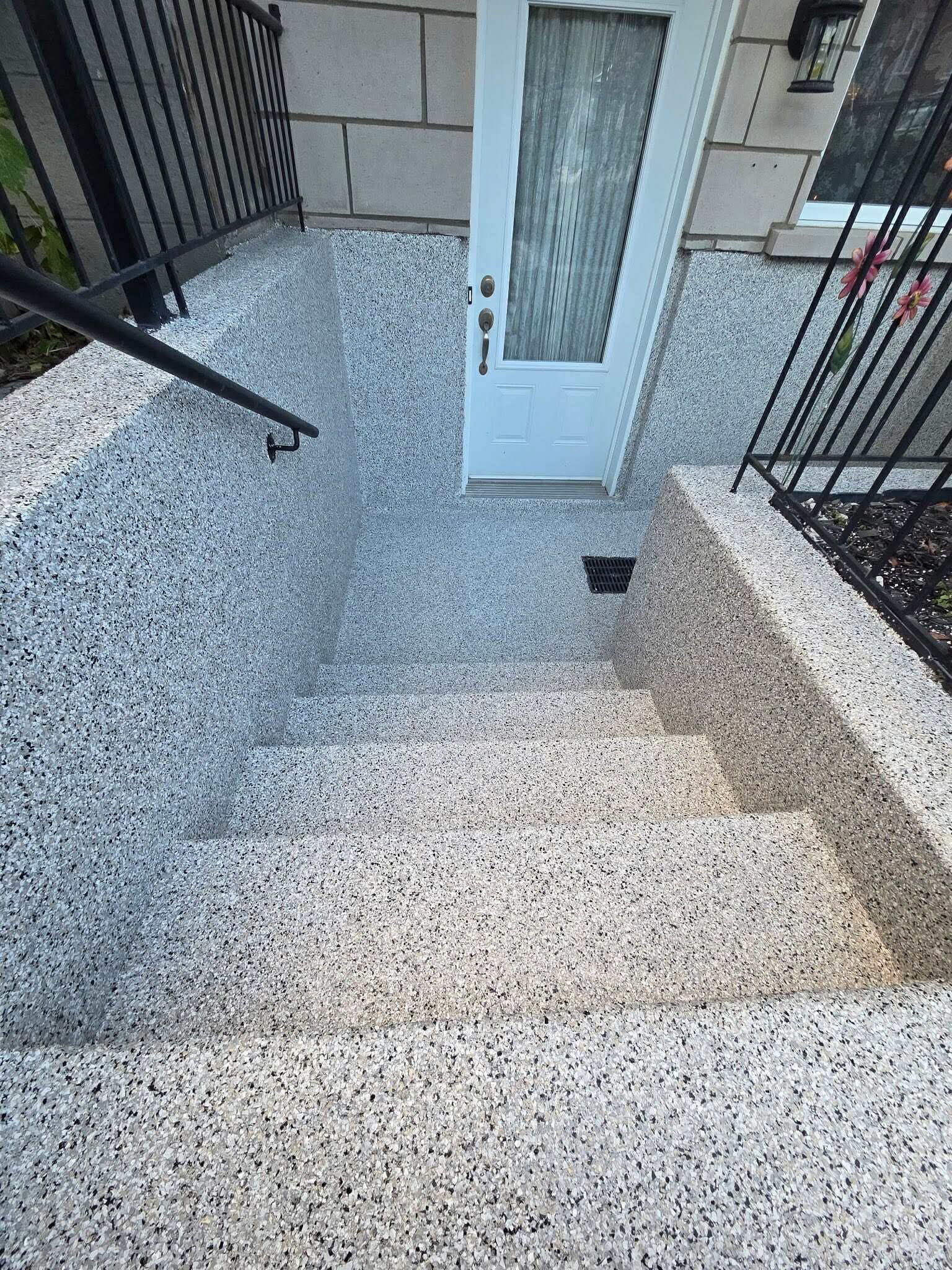 Pour les balcons ou surfaces horizontales, nous utilisons deux solutions selon vos besoins : le Martex, un enduit acrylique texturé, et l’Époxy flocon pour une finition résistante et décorative. Le processus inclut le sablage, le nettoyage en profondeur, la réparation des fissures, l’ajout d’un treillis si nécessaire, la pose du revêtement choisi et l’application d’un scellant protecteur. Ces étapes garantissent une finition solide, durable et esthétique adaptée aux besoins résidentiels et commerciaux. Plusieurs couleurs et textures sont disponibles pour un résultat à la fois fonctionnel et élégant.
